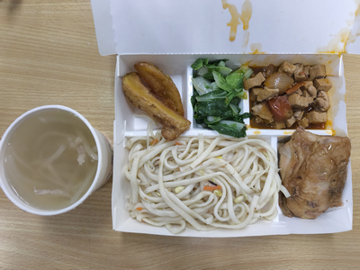 | 主食:紅蔥雞肉飯 | 主菜:鹽酥雞 |