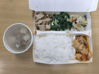 | 主食:白飯 | 主菜:醬燒雞 |