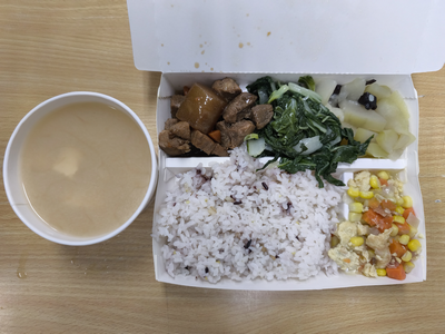 | 主食:五穀飯 | 主菜:蘿蔔滷肉 |